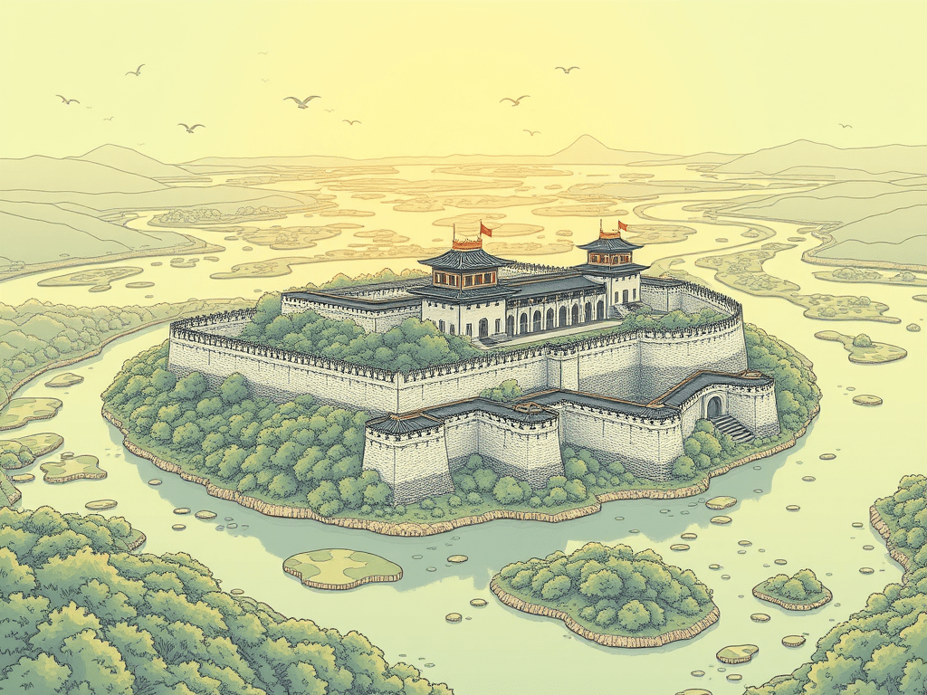 Two great rivers drain the Valley and the western side of the Golden Mountains into the Bay. Those rivers were dubbed North River and South River, sometimes called Wei River and Bai River, after Xinguo’s first two great explorers. They almost meet each other, but then swerve west and converge where they both flow into the Bay. Thus, the two rivers from a single delta region. Bai River splits into many branching streams, forming a maze of waterways splitting and reconverging around an array of islands before they all ultimately reconverge just before reaching the Bay. At the centre of these islands is where Bai Hongjin opted to place the foundations of his settlement.